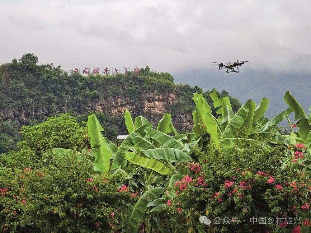 中国联通香蕉大数据产业园里,无人机正在给香蕉园喷洒营养液。朱峰/摄