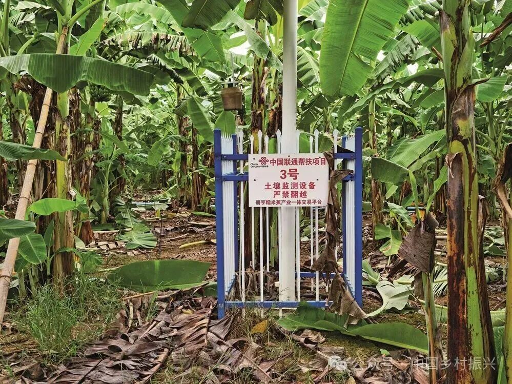 中国联通香蕉大数据产业园香蕉基地里的土壤监测设备。朱峰/摄