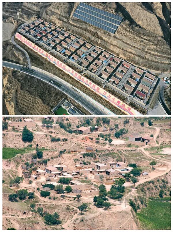 上图拍摄于2025年12月26日,布楞沟村村容村貌和村民生活迎来了翻天覆地的变化,解决了“吃水难”、“行路难”、“住房差”、“就学难”等一系列难题。下图拍摄于2016年,布楞沟村作为“苦瘠甲天下”的深度贫困村正在改造建设,群众居住在简陋的土坯房。 甘肃省东乡县融媒体中心供图