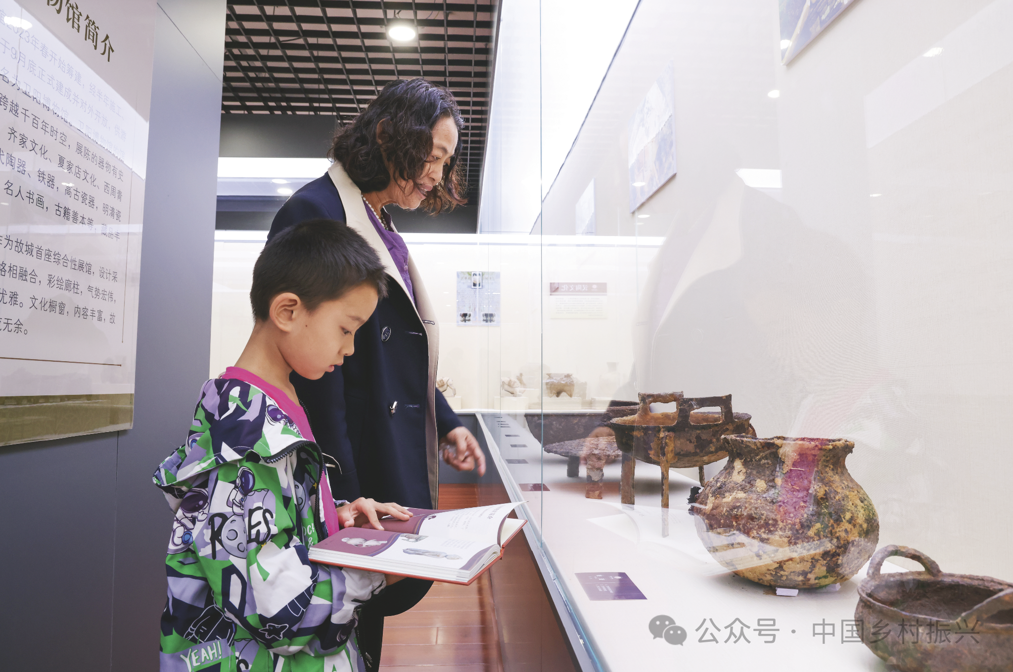 家长带着孩子在故城县卫阳博物馆了解故城历史。