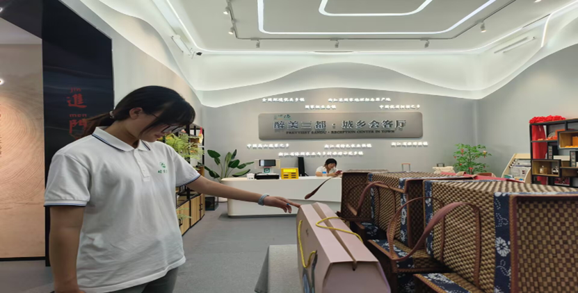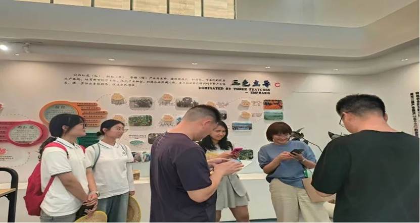 上午,团队成员走进“醉美三都·城乡会客厅”参观。墙上的展板详细介绍了三江口村的乡村运营模式。三都镇以“乡村梦想家——我在建德有个村”活动为抓手,积极招募整村运营团队。通过政府“有形之手”与市场“无形之手”的紧密协作,充分吸引运营人才。依托绿水青山的生态优势,推出“民俗+非遗”“农旅+文体”“传统+创意”“专业+跨界”等多元路径,全力打造幸福宜居的三都新图景。在会客厅里,团队成员见到了诸多关联产业产品,有特色稻香米、各类红柑橘,还有香榧油等衍生产品,直观感受了当地以西红花、柑橘、香榧为主导,“红黄绿”三色支撑的农业产业体系的多样成果。这些产品不仅展现了当地农业的发展水平,也为乡村振兴注入了新的活力。