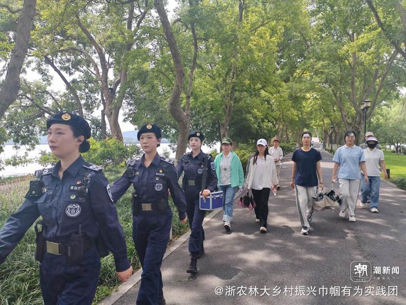 7月16日,浙江农林大学村官学院“乡村振兴,巾帼有为”大学生暑期社会实践团一行12人赴杭州市西湖景区,开展专题调研活动,深入考察杭州西湖风景名胜区综合行政执法队女子巡逻队的工作模式及社会价值。通过实地跟岗巡逻、观看宣传片、座谈交流、参观办公环境等形式,实践团全面了解了这支以女性为主体的景区管理队伍的创新实践与服务特色。
